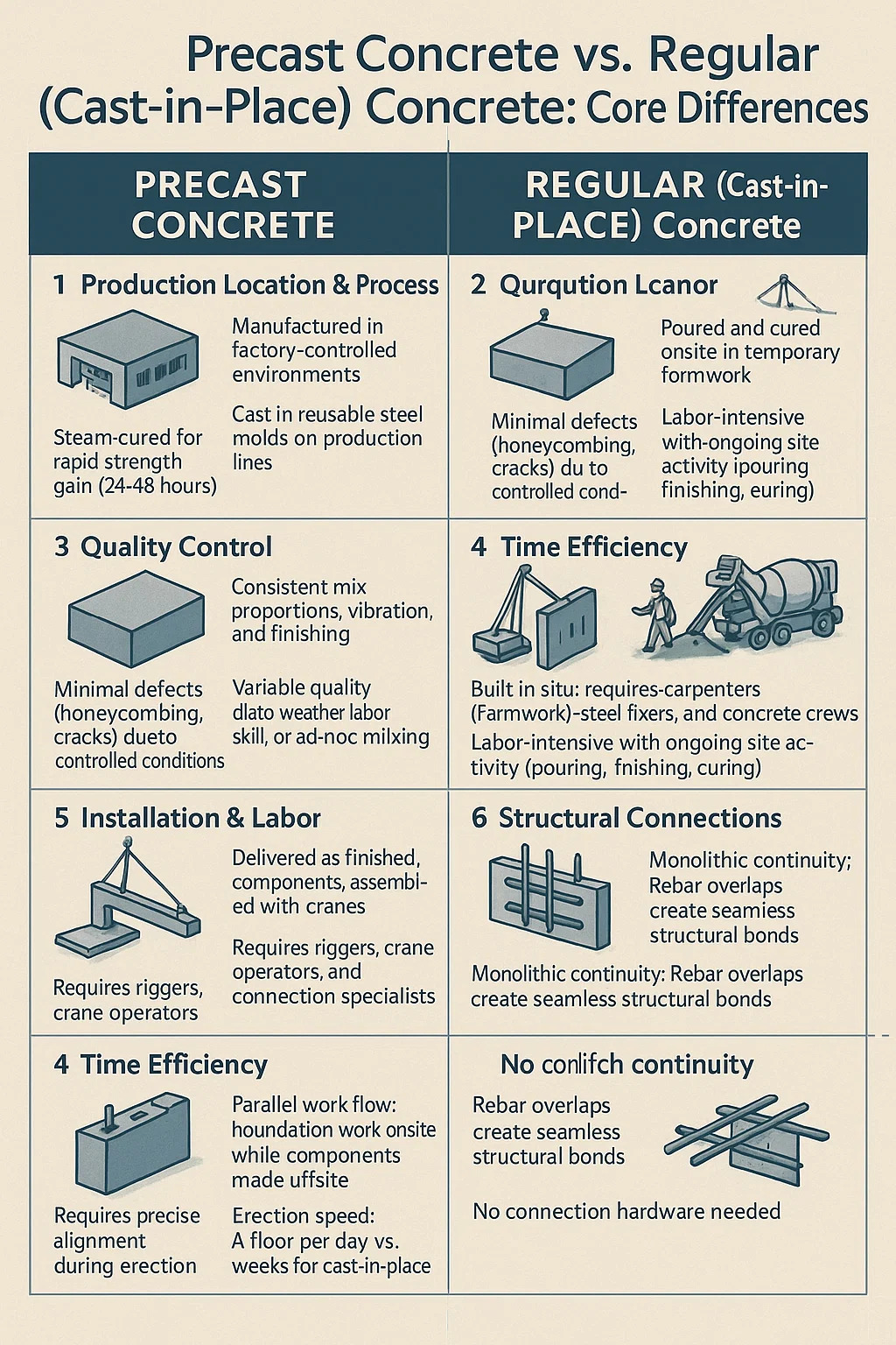 Előregyártott beton vs. szokásos (helybe öntött) beton: alapvető különbségek